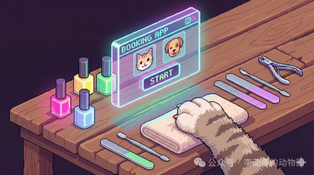 "我想把整个美甲流程放到小程序上,"她说,"客人可以提前看流程、选款式、约时间。还有我们家那几只猫狗,也想给它们做个介绍页面,让客人提前认识一下。"