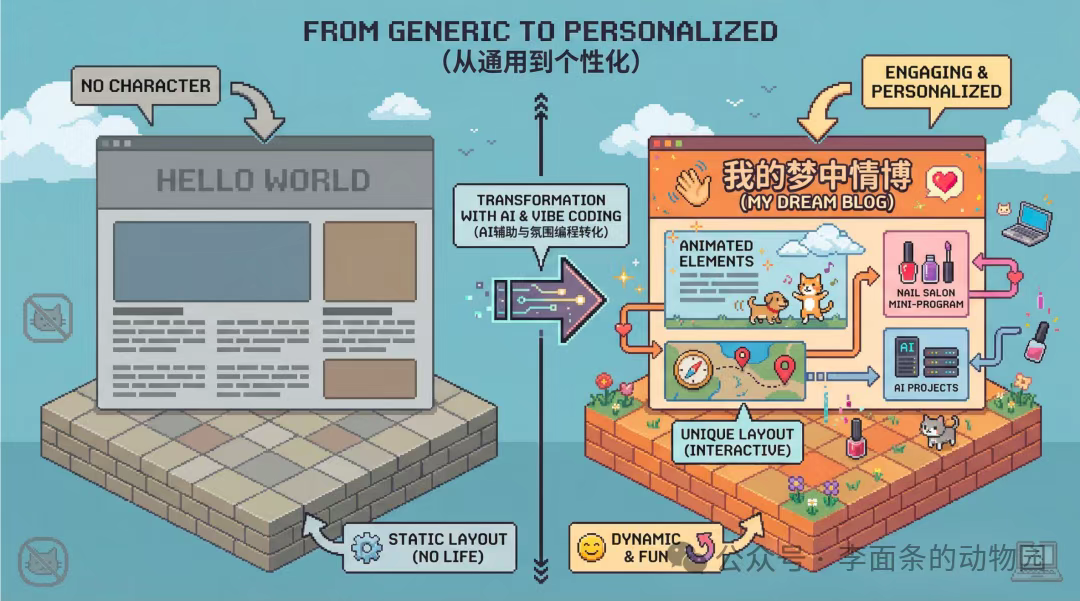 我更希望它像一份持续更新的"建站日志/实验记录":写给未来的自己,也写给那些和我一样——想做点有趣项目、但又不想被信息洪流带着跑的人。